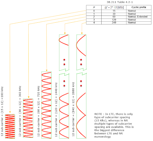 Subcarrier Spacing : In NR , there are multiple subcarrier spacing as there is numerology .