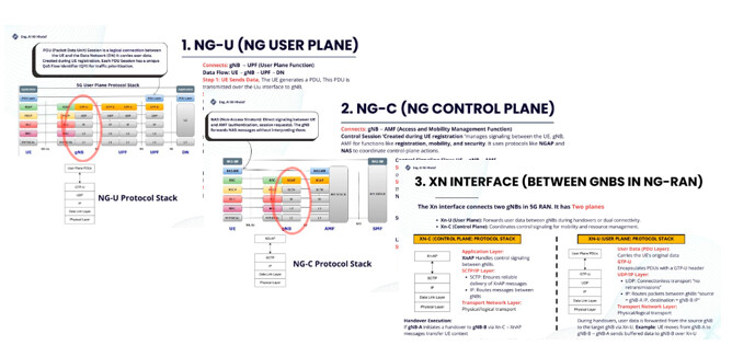 5G networks rely on multiple interfaces to handle signaling, data transport, and mobility.