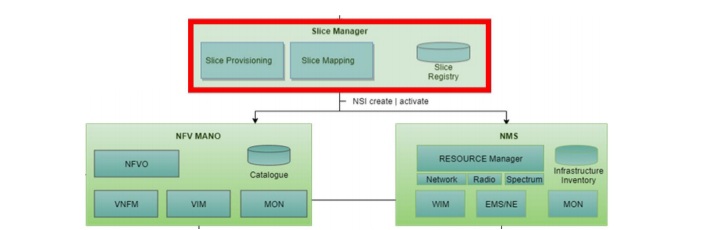 management and orchestration layer, as shown in Figure below. The Slice Manager receives the