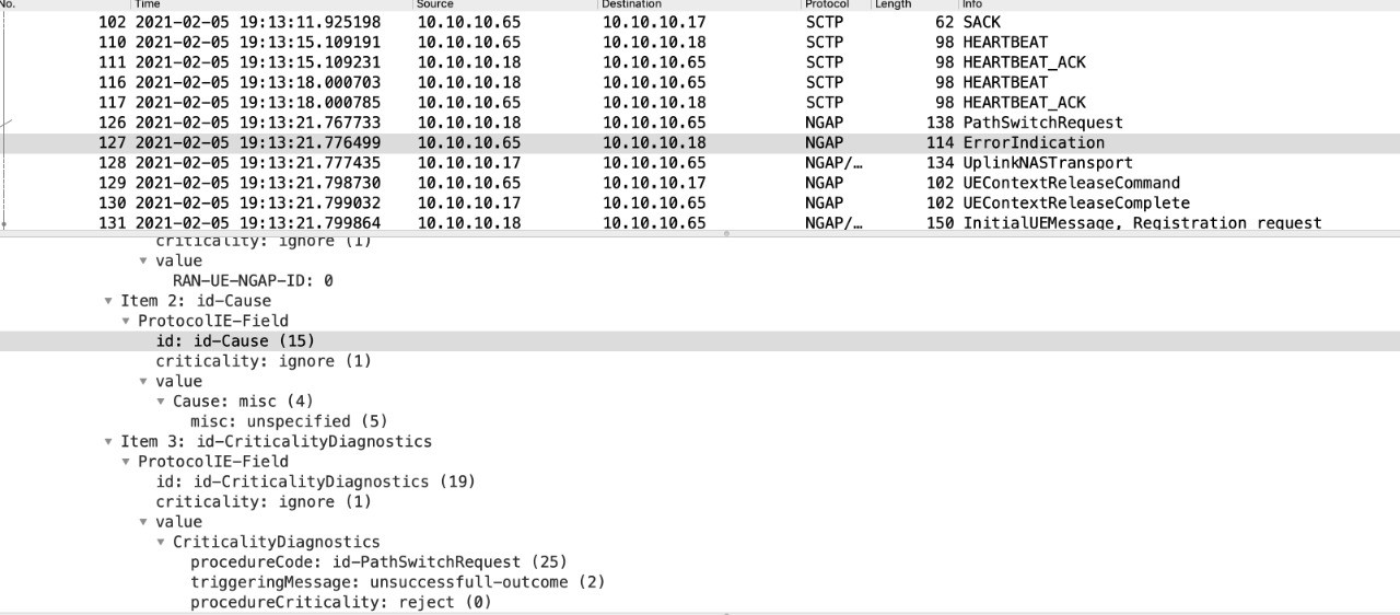 Basically after patch switch request message sent by target gNB to AMF, the AMF isn’t being able to decode the “Pdusession Resource To Be Switched Dl list IE”.