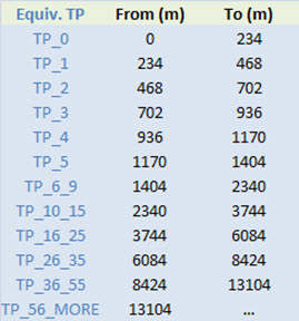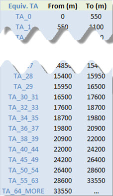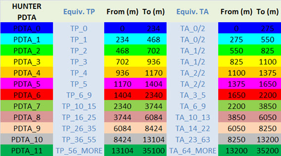 To this, the module ‘Hunter Propagation Analyzer’ uses a methodology and ‘particular’ counters, allowing to do this approach: we have created a range, and called it PDTA. As the 3G (Huawei, which we are using as an example) has less ranges - only 12, we made the initial PDTA definition based on it. The result can be seen in the table below.
