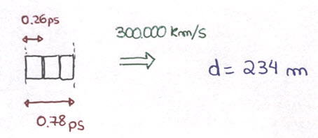 And now let’s translate this minimum value into Distance: If I run 300,000 miles in 1 second, what distance I run in 0.78 ps? Answer: 234 meters.