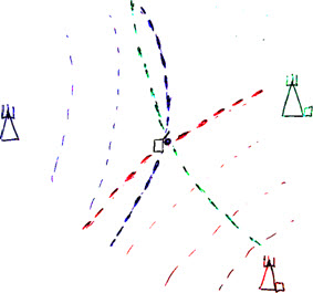 With this distance information we can draw a circle with the likely area where the UE is. And if it is being served by various cells, the intersection of the circles of each one of them gives us a more accurate positioning (it is what we call ‘Triangulation’). And these calculations are even more accurate when other information is used togheter, such as ‘CellID’, MCC, RNC, LAC and Call Logs (CHR), with much more detailed information.