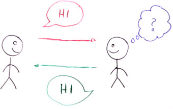 Let’s understand what it is with an example. Imagine a simple communication between two people, where the first say ‘Hi’, and the second one also answers ‘Hi’.