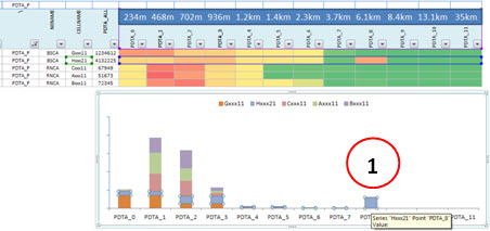 Filtering only for the contribution (‘PDTA_P’) of each cell, we can see clearly that a sector (Hxxx21) is with its coverage beyond the expected (1).