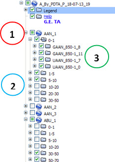 The data are grouped in ‘Folders’, with the first level being the sector (1) (a specific direction for all cells of all technologies and carriers). At the second level, we have the ranges (2) of PDTA percentage (how many samples from total cell samples we have in each region). And in the third level we have cells/PDTA (3).