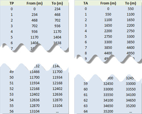 Note: See however that the amount of ranges here (GSM) is much bigger, and only begin to be grouped from 30 (from almost 17 km!).