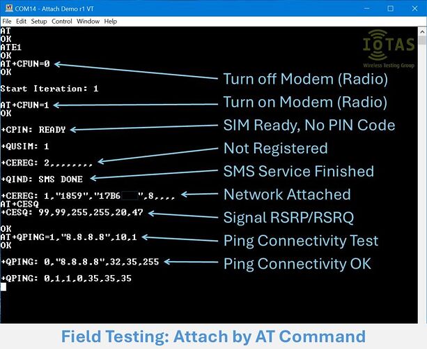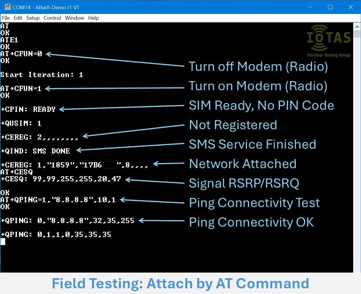 When testing LTE IoT devices, a simple AT command interface can tell you a lot about how the modem connects to the network.