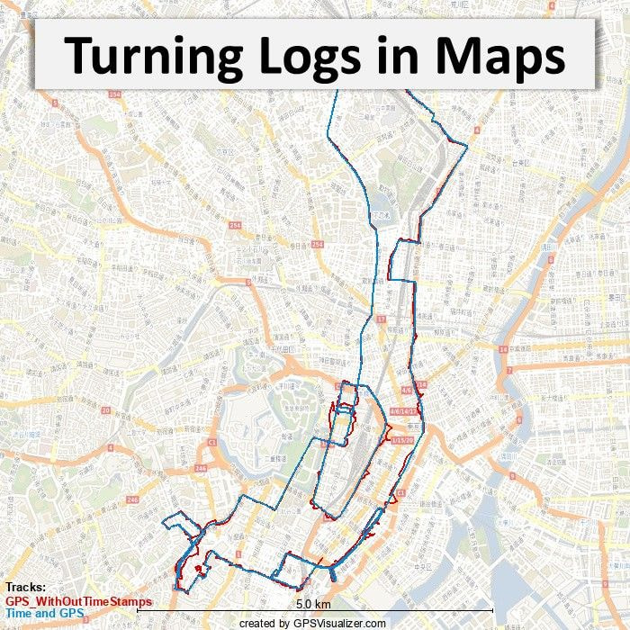 Here, GPS Visualizer is used to help plot an urban drive route from field logs: