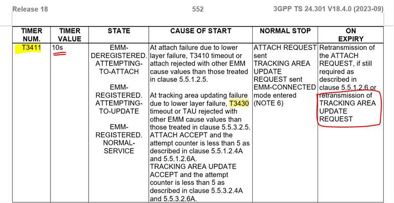 Is there any 3GPP or vendor based document of how and when the UE shall retransmit a new TAU request?