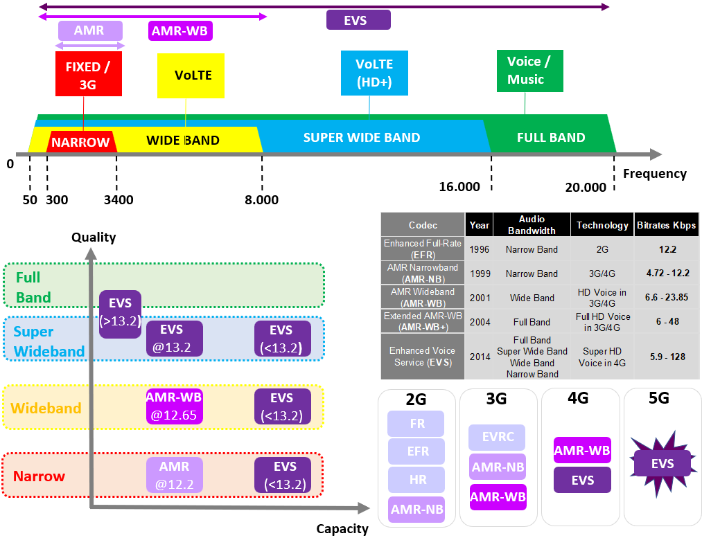 It allows to have HD VoLTE speech codec, and classified into EVS narrowband, EVS wideband, EVS superwideband, and EVS fullband. Either 5.9 or 13.2 or 16.4 kbps [Amr does 12.2 to 5.9]
