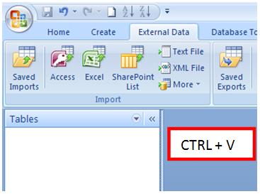 learn the standard way to import, but now wants to see a little bit different, but faster? Open Excel, select all the data, and copy (1) data (Menu, Copy or Ctrl + C). Then click on the desktop Access cole (2) data (Menu Paste or Ctrl + V). Access will ask if the first line contains the field names (3); answer yes. Not faster?