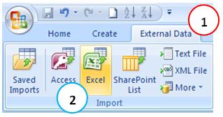 Another, perhaps more correct in our case since we already have the data in Excel, it would import the table through the Menu: External Data (1) -> Excel ( 2). Then click the Browse … and point to our Excel file (3).