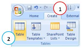 To create a query, go to the Create Menu (1) -> Query Design (2).