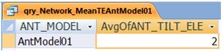 We now use the two options. Suppose we want to know the mean of Electrical Tilt to the sectors that have the type of antenna AntModel01. To do this we create the query qry_Network_MeanTEAntModel01.