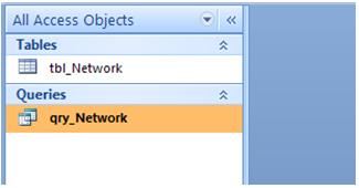 Nothing extraordinary so far: we have a table - tbl_Network - with our data, and a query - qry_Network - where we can view the data.