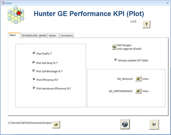 Note: to run this application, simply open the file ‘Hunter_GE_Performance_RUN_KPI_1.0.0.mdb’ located in the directory: ‘C:\Hunter\GE\Performance\Scripts’.