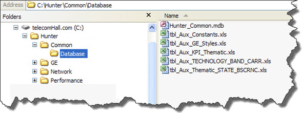 This information can be provided in tables in the Access Databases, but for convenience, we saved it in Excel tables. And the common directory that we use for this control is the ‘C:\Hunter\Common\Database’.