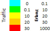 In above example, we define for example, for the ‘TRAF’ - Traffic, ranges 0 to 0.1 as light blue (LightBlue), 0.1 to 10 as light green (LightGreen), etc.