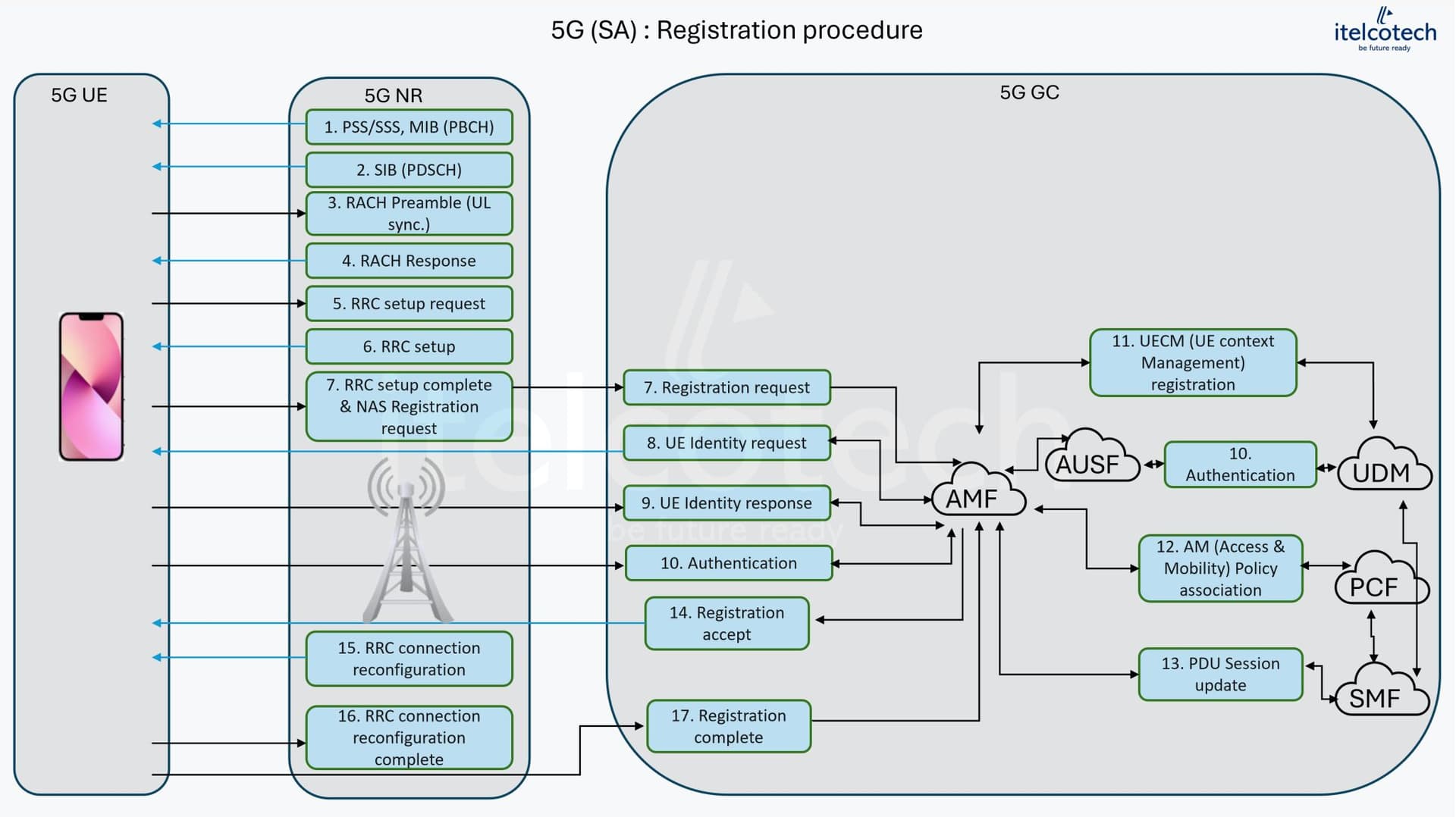 Before a 5G device (UE) can stream, call, or exchange data - it must first establish access and register with the 5G Core.