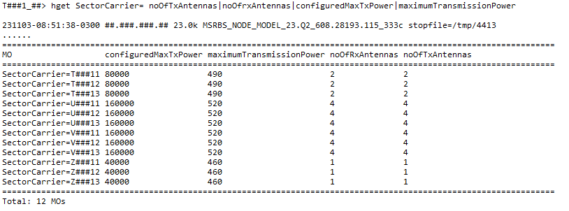 T###1_##> hget SectorCarrier= noOfTxAntennas|noOfrxAntennas|configuredMaxTxPower|maximumTransmissionPower