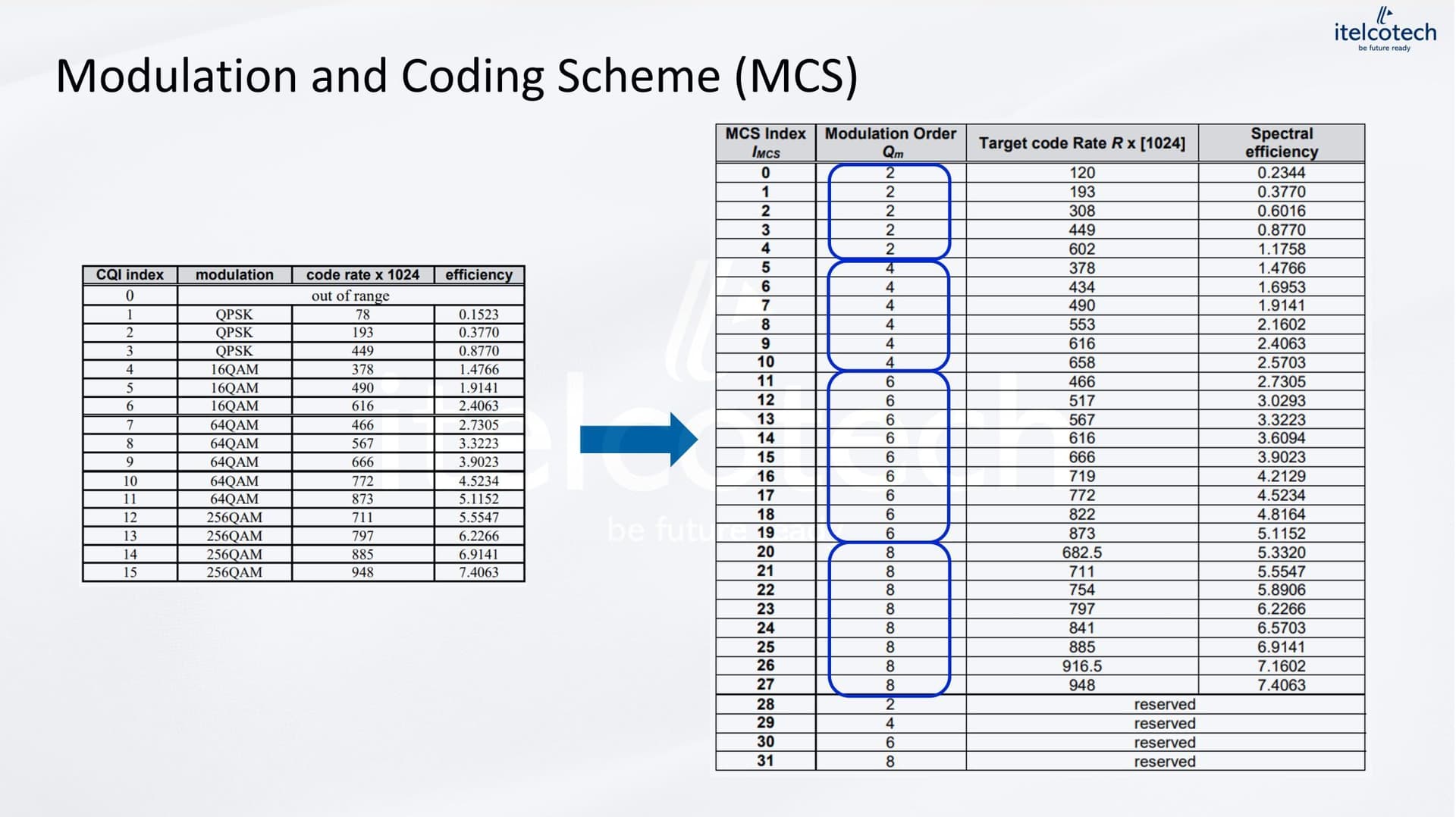 Together, modulation and coding form the MCS, which dynamically adapts to conditions: