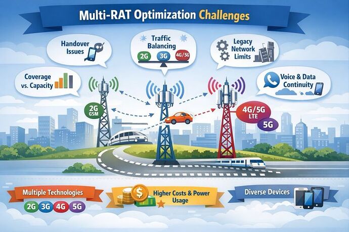 - Distributing traffic efficiently between 2G, 3G, 4G, and 5G to avoid congestion on one RAT while others are underutilized.