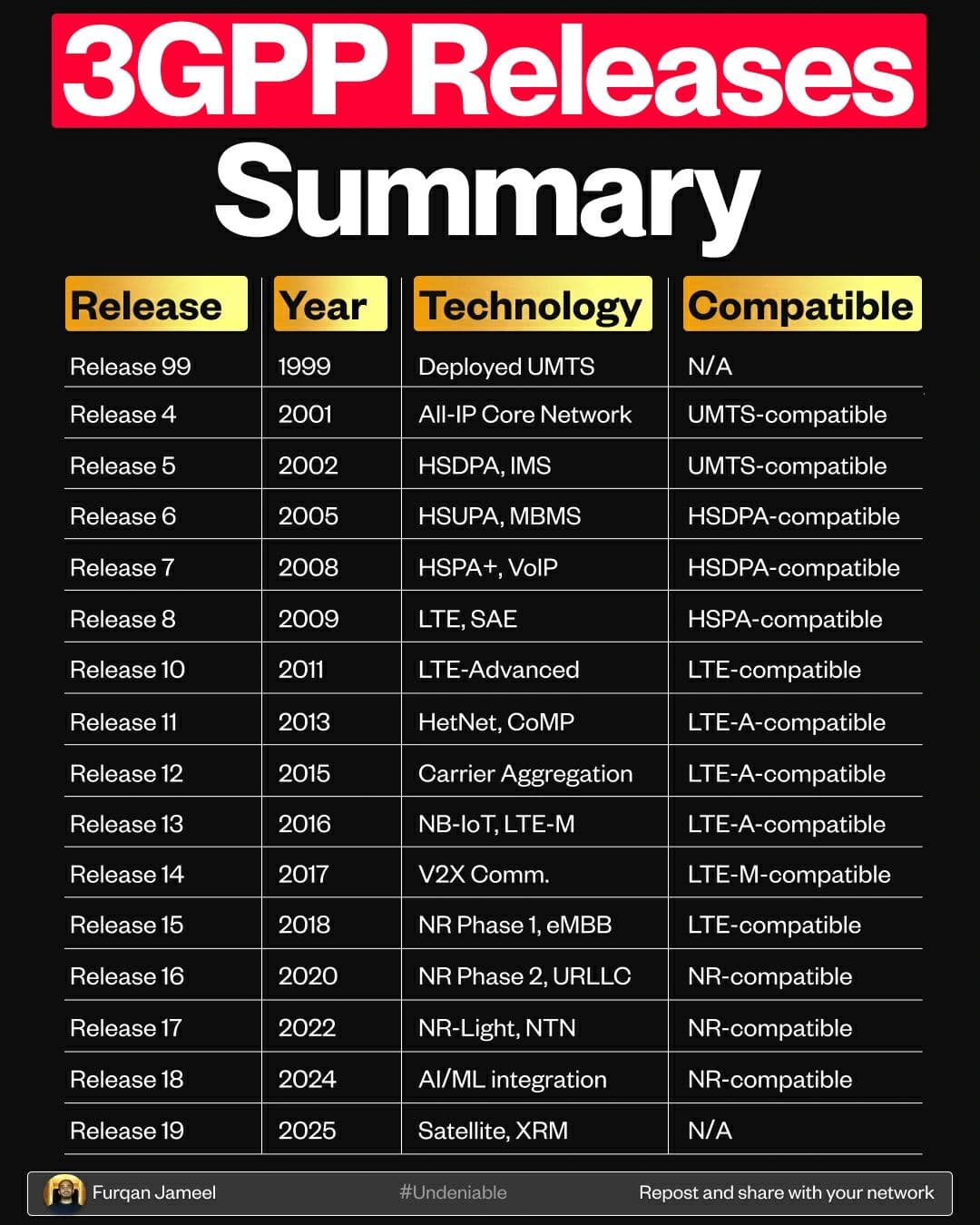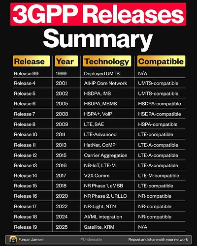 - Release 19: Sets the stage for 6G.