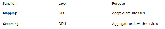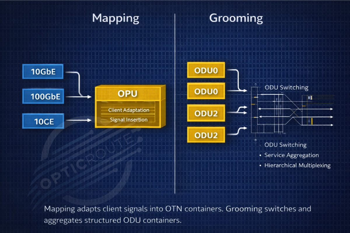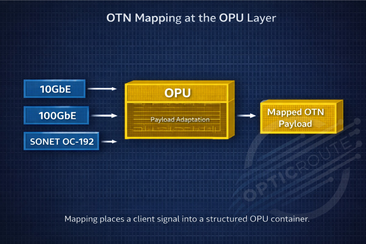 Client signal entering OPU and becoming structured OTN payload.