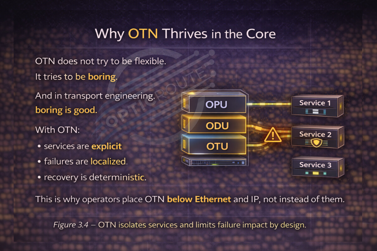 This is why operators place OTN below Ethernet and IP, not instead of them.