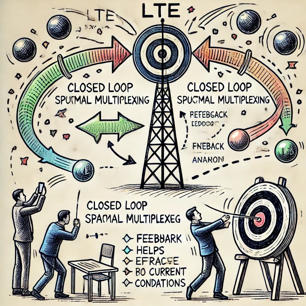 Closed Loop Spatial Multiplexing does the same thing as Open Loop but with feedback. This means the receiver (like your phone) tells the transmitter (like the tower) how to throw the balls better, so they land in the right spot.