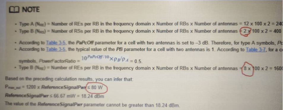 If RRU power is 40w then is there any change any calculation and why type B REs is 8?