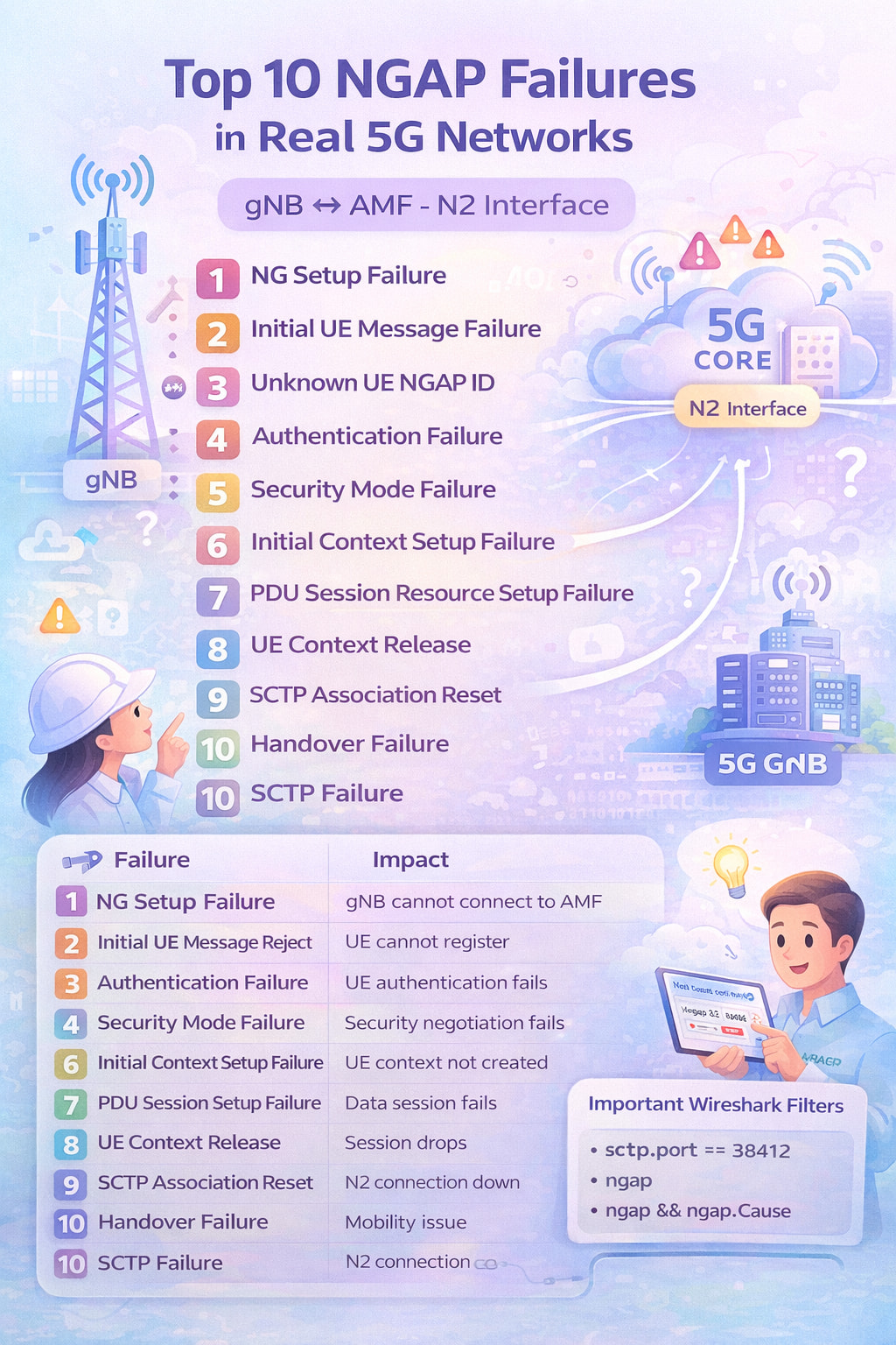 | NG Setup Failure | gNB cannot connect to AMF |