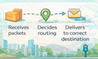 - Decides routing