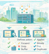 Applies QoS and forwarding rules