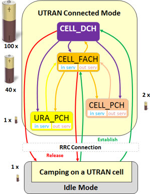 To help improve this problem 3G mobile that is in connected mode, there are the states: CELL_DCH, CELL_FACH, CELL_PCH and URA_PCH.