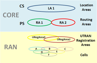 The following figure shows the different possible location identifiers, from the point of view of RAN (Radio Access Network) and also Core CS (Circuit-Switched) and Core PS (Packet-Switched).