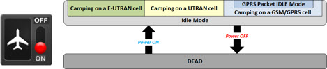 Although not illustrated in the figure above, the act of turning on (power-on) is not the only one that takes the mobile into idle mode. The mobile can go into idle mode also when we turn off the its ‘airplane’ mode.