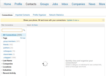 From the main LinkedIn page you have quick access to a lot of information, and can also send ‘updates’.