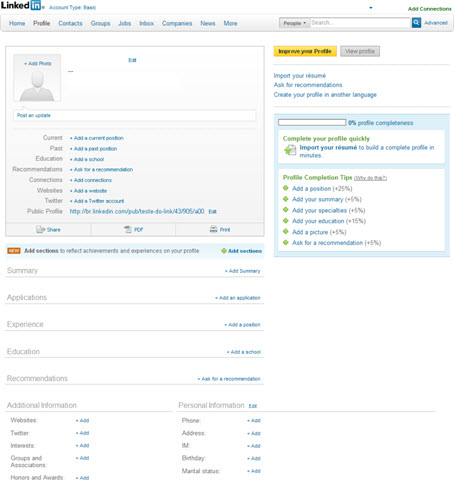 As this is your first access, and you have not filled out any information about you yet, LinkedIn presents some Wizards to help data entry task.
