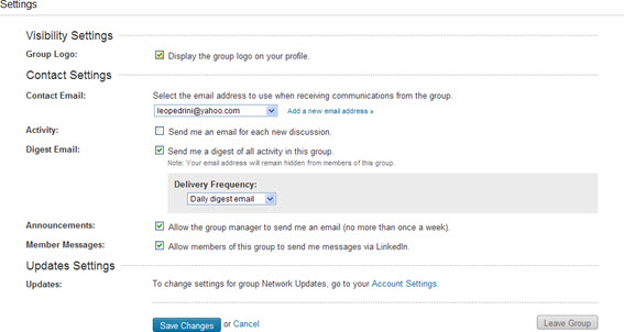 Don’t worry, you can make all the settings you want (‘Your Settings’). Since receiving daily emails, till not receiving group emails - only see discussions of your group via Web. If you don’t like to receive emails in your inbox, a good tip is to choose to receive a weekly summary, with all messages in one email. And of course, you can immediately leave the group whenever you want (‘Leave Group’ button).