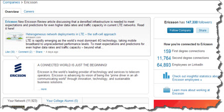 Like you, your Company can - and should have - be present in LinkedIn. For example, we see the Ericsson Company page on LinkedIn.