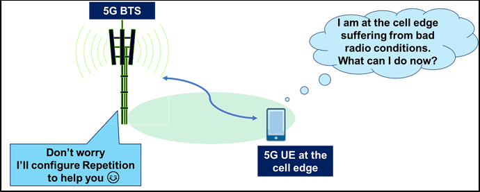 - Me: Repetition is used to transmit the PDSCH transport blocks multiple times and this can be used in case of UE is having bad radio conditions and so the 5G BTS can configure the UE to use repetitions and once UE is again in good coverage, 5G BTS will release the repetitions not to consume extra resources with the same data. Also, note that repetitions are configured when UE is having a single transmission layer only.